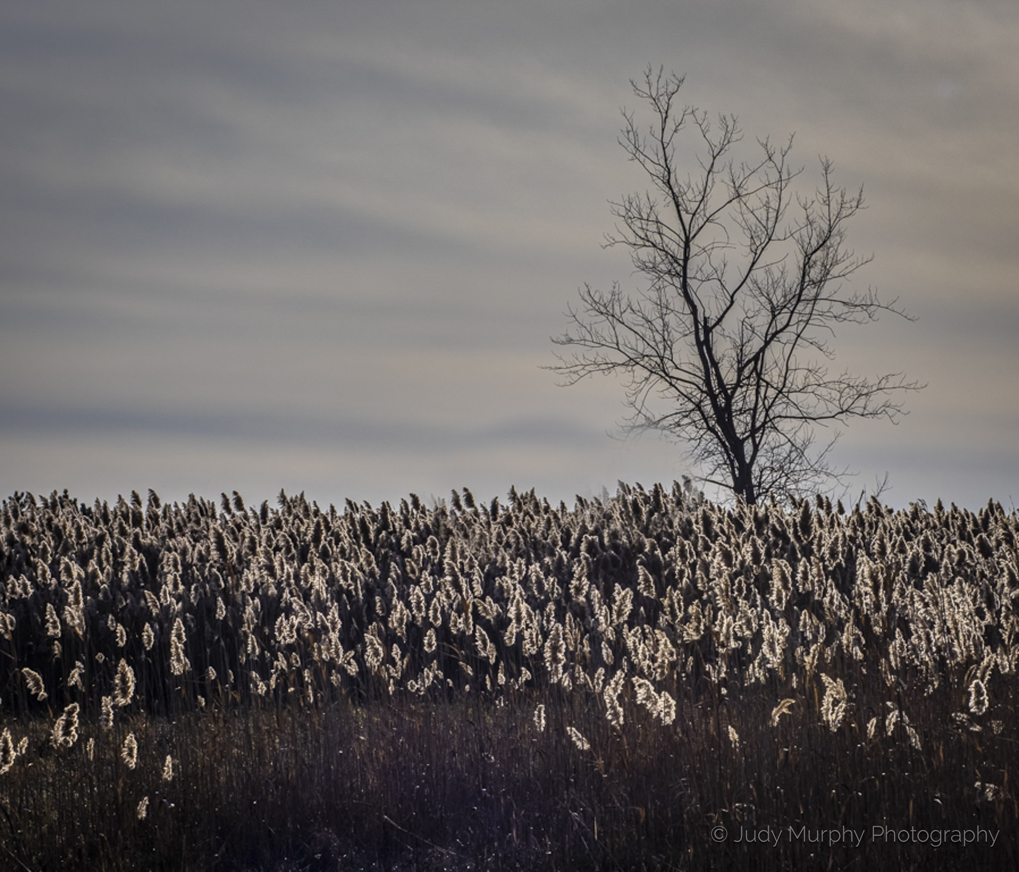 The strongly backlit phragmites are presented in lovely silhouette as is the lone tree which overlays a nicely layered non-distracting sky - all of which adds impact.