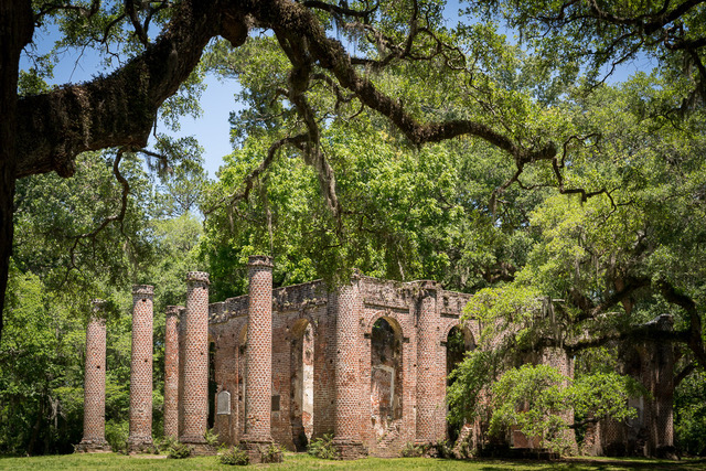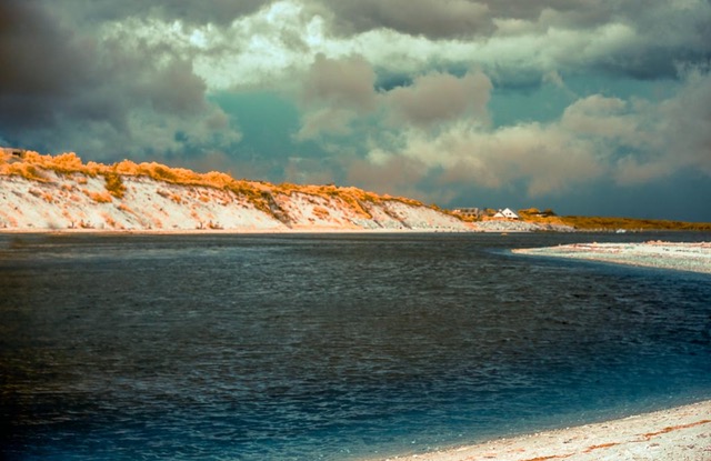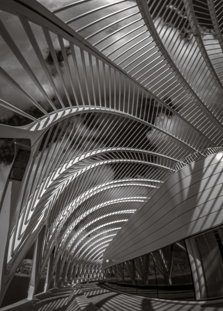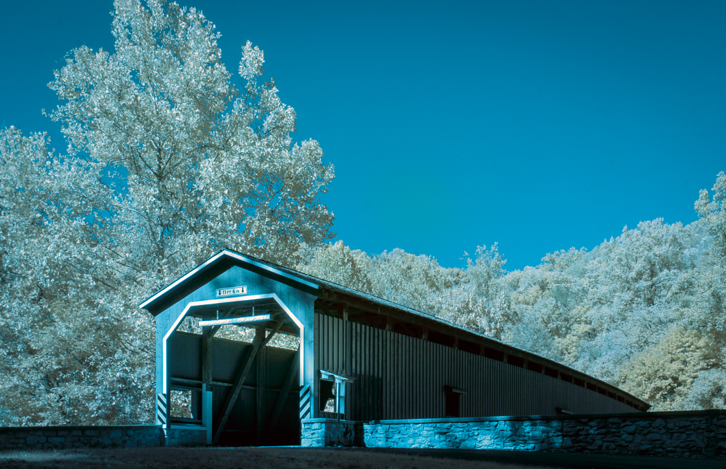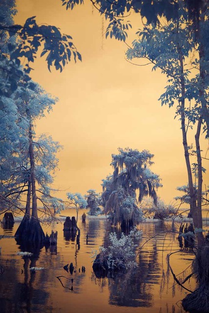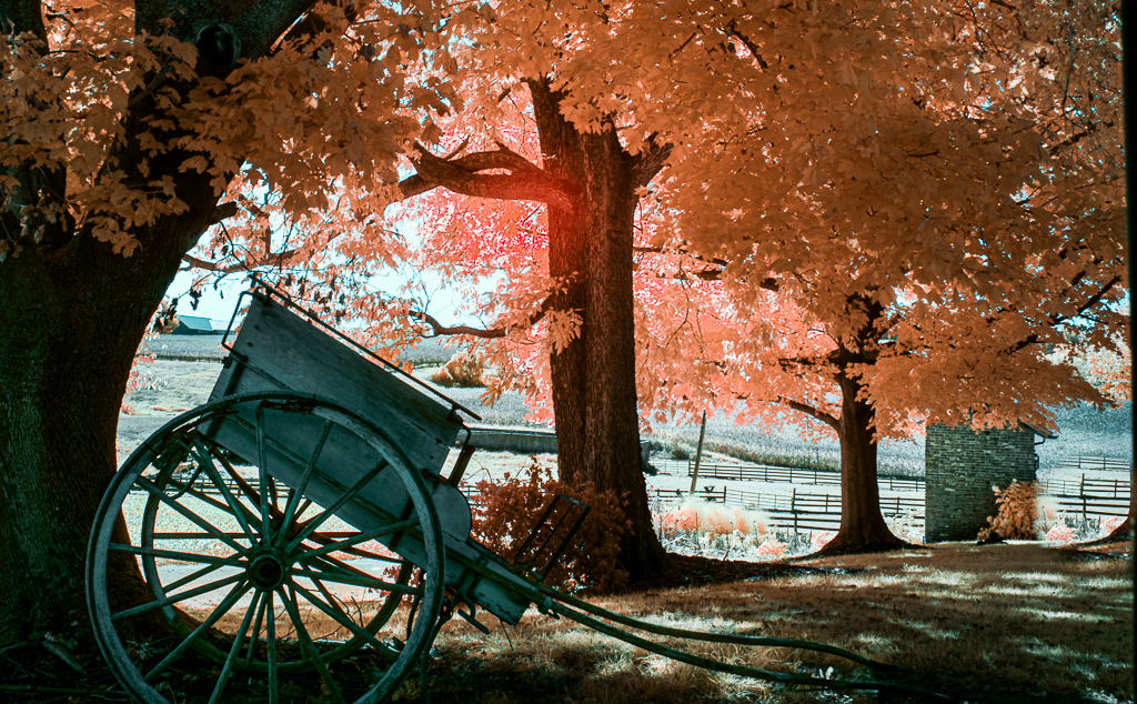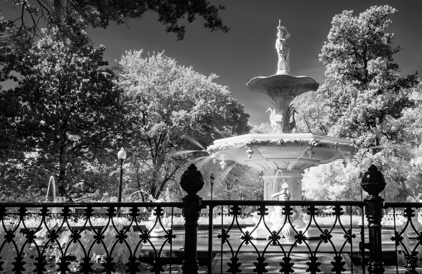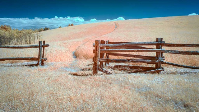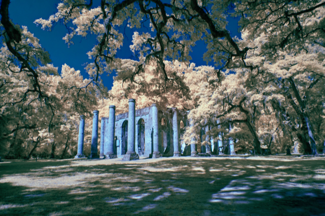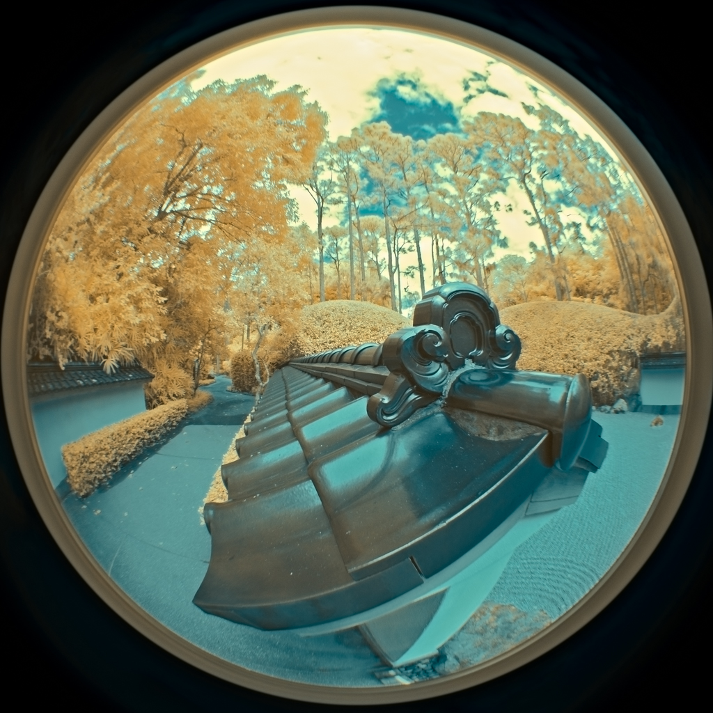 This Architectural genre image has nice diminishing perspective elements drawing me back into it as well as lots of interesting details to study and hold my interest. Like the IR effect on the gold foliage and building details and the color contrast with the deep blue sky. IMHO the green IR effect on the color of the walkway doesn't add value. Lisa's adjustments work for me as well.