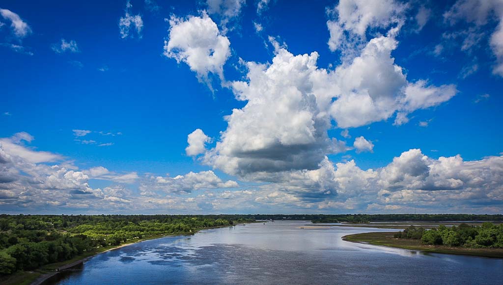 The centrally located horizon gives equal value above and below it; I believe the scene below is more important and impactful and would suggest considering cropping some sky to rebalance.