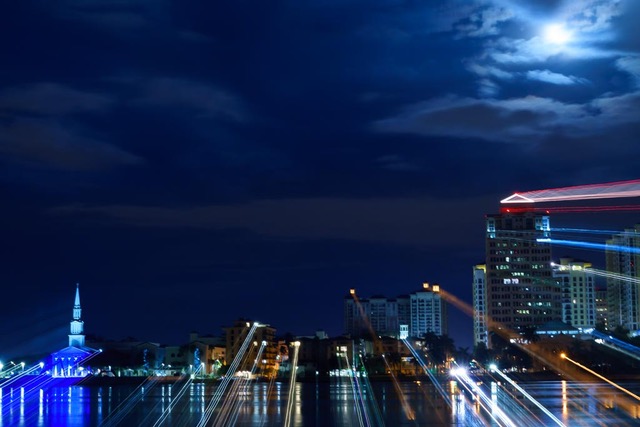 The compositional hook for me is the fireworks and the colorful buildings. The warm twinkling lights of the background city lights with no distractions to draw me away. |