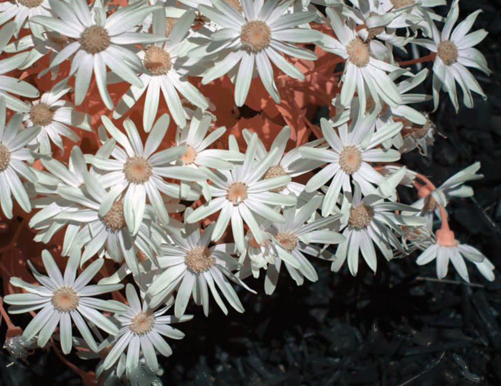 Flowers do appear a bit hot to me. I'm starting to use CLiR and so I took original into PS and used ClIR plug-in by Tonee Gee. Set WB and picked an channel swap I liked, added auto contrast, Highlight recovery, and a bit of rich color adjustment. I never did see the lavendar petal tones in CLiR. Returned to LR where I cropped and added vignette. |