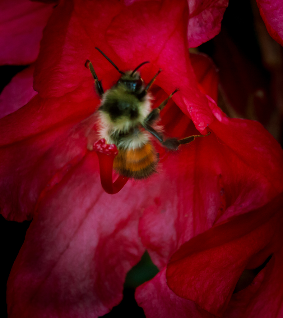 I may need a better lens to let more light in with the faster shutter speed... I did add a vignette to darken the edges to help focus on the bee but maybe it would have been better to just leave it the way it was. Thanks for your thoughts. |