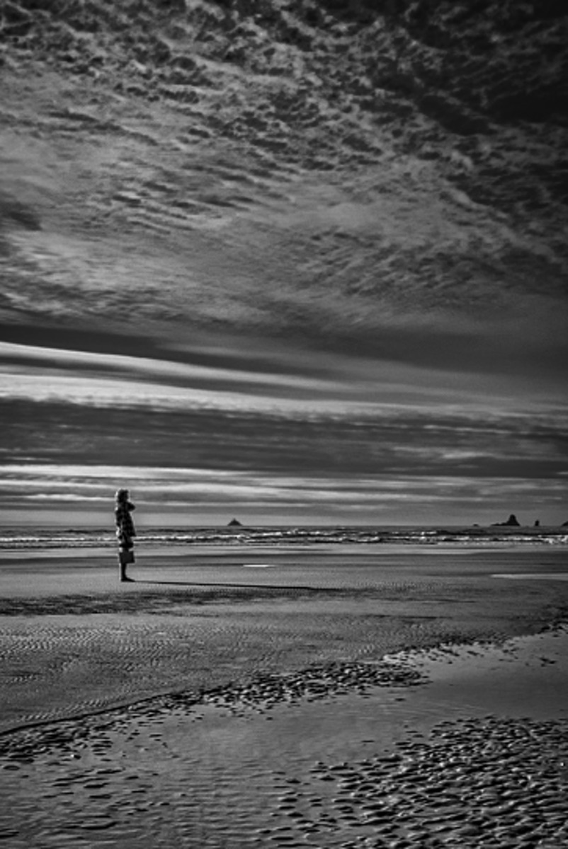 So many possibilities on an excellent capture. Here is another viewpoint. I like the portrait version for the reason the person is a little too far to the left to make it a landscape view. Im just a dark sky guy, can't help it. Adjustments made in Luminar 4. |