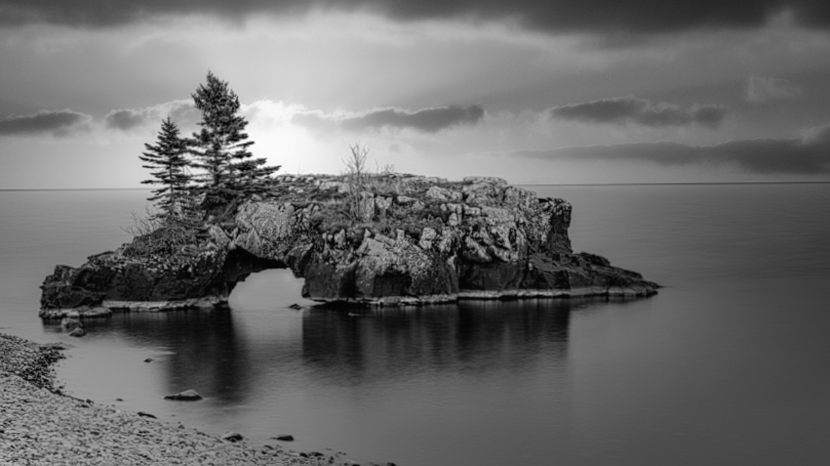 Nice image with sharpness and mood. For me there is nothing wrong with replacing the sky. It seems natural to making a piece of art. I took it into Luminar AI and did one of their stock sky replacements. One that the setting sun fit the hole in the island. If entering competition I woiuld never use anything but my own collection of skies. Flipping makes it a little unnatural in my view. Straightened the horizon along with cropping to 16x9 |