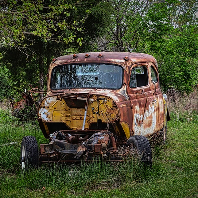 Same here, love these old cars and trucks. I always wonder where they have been. For me, its a little too bright so I took it to Luminar Neo and cropped to square, reduced the exposure a tad, sharpened a touch and added a slight vignette. For help I suggest stepping to the right a couple of feet to get more of the ¾ view along with the door. Show us more of this place, very interesting.