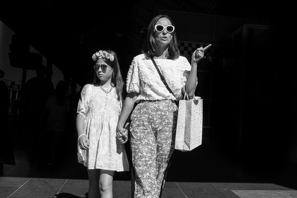Street Photography at its best. The composition, sharpness, story telling is terrific. Mom trying to show the daughter something interesting. A great example of Chiaroscuro, distribution of light and shade. I converted to BW with no adjustments just to see what it looks like. What do you think? Love your camera and lens. |