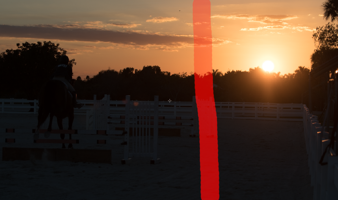 Thanks Vicki. The recompose tool in Elements is a brush that is applied (drawn) either vertically or horizontally across the entire image. The brush size can vary depending on your needs by use of the bracket keys. From the top or sides you "squeeze" in toward the area covered by the brush until that part of the image disappears. It cannot be used a lot of the time but does have some very useful applications for certain compositions. In my image I used it in the area just right of the middle to lessen the area between the rider and the sunset -- maybe at most 10%, if that. I wouldn't be surprised if there was an equivalent brush in Photoshop, I just haven't been able to find it. |