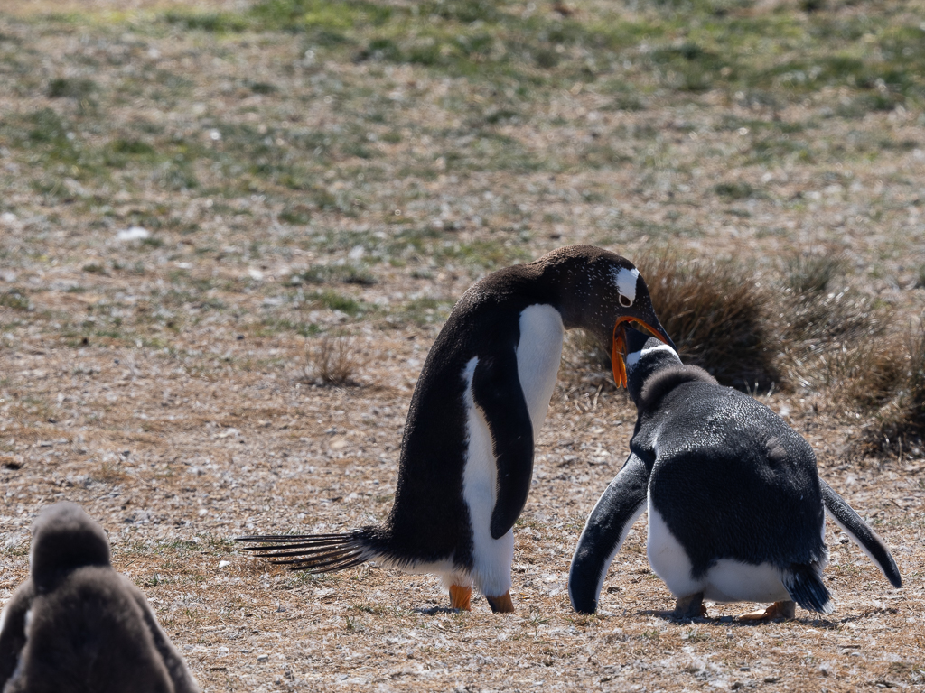 Nice interaction shot, and pretty good detail considering it was backlit. The only problem for me is the bush immediately behind the birds, which is somewhat distracting. In your "first original" the penguin is very well isolated from the background, and shows much to its advantage in terms of composition. Would you have been able to move around to the left or right for a different angle? |