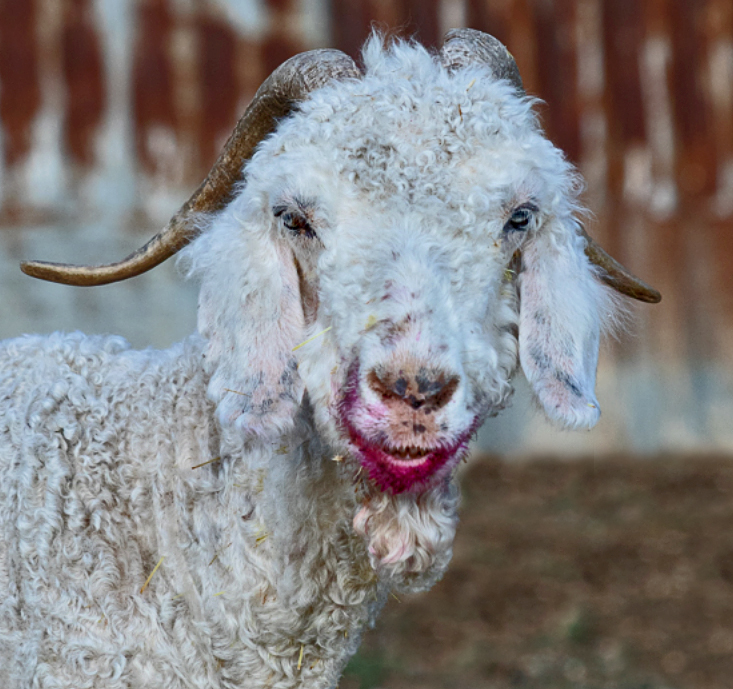 I like the pose and the story that is being told. Since the 'hot lips' are relatively small, maybe bringing in the composition a bit would make them more visible. If you don't mind I played around with the image a little; I zoomed in, added some contrast and brightening and removed some of the clutter on the right of the goat to illustrate what I mean. |