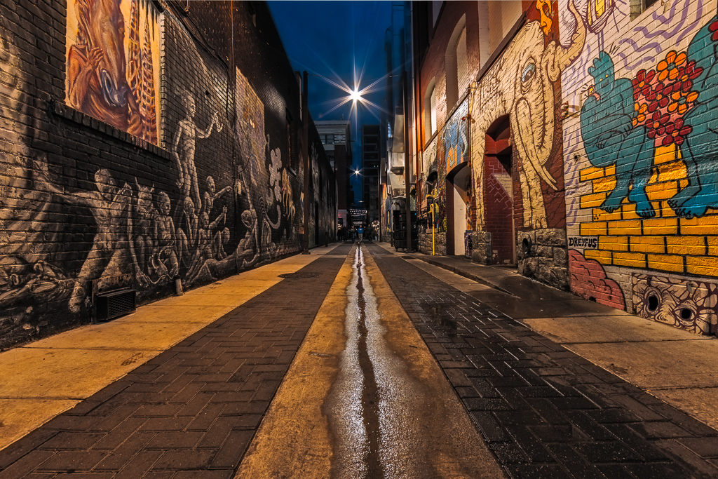 On the technical side, i would clone out the sign, slightly darken the windows in the back and straighten it. I'm also curious what it would look like slightly under exposed. |