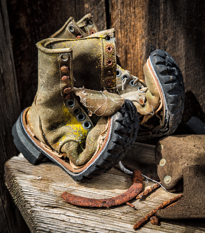 The story was spot on! I instantly knew the era from which these boots came. I like the processing technique particularly the vivid texture. I would like to see a tad bit more space at the bottom and more of the boot on the right. |