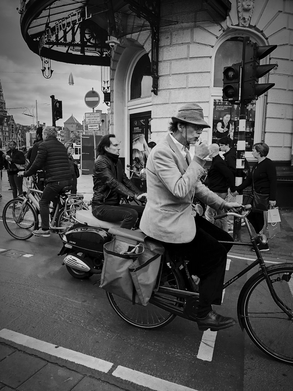 This image evokes a Sunset Boulevard during the 70s kind of irony between a carefree lifestyle and the desperation of trying to "make it." You definitely caught a moment in time. While I like the monochrome choice, I would be curious to see how adding color to just the red gloves might appear. Not bright red so much, perhaps a more muted dark rose. I also am intrigued by the hand-rolled cigarette. If there is a way for you to bring that out, perhaps through burning out the scarf behind it, I think it would strengthen its impact. The composition is outstanding. Her left hand keeps the eye moving in a circle from the cigarette to her nose tip to her eyes to her messy bun down along the scarf and back to her left hand. The freckles on her face add to the texture of the image.