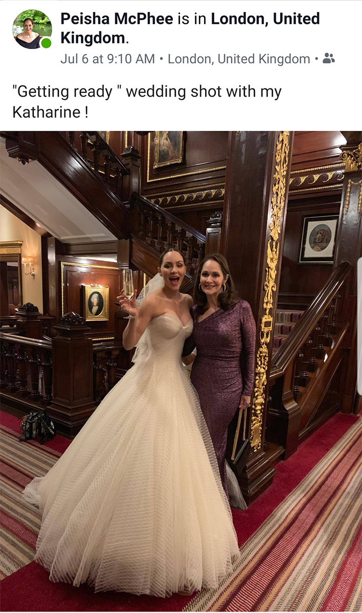 "The Waitress" (Katherine McPhee) got married Saturday to David Foster in London. Here is Katherine and my friend, Peisha McPhee. |