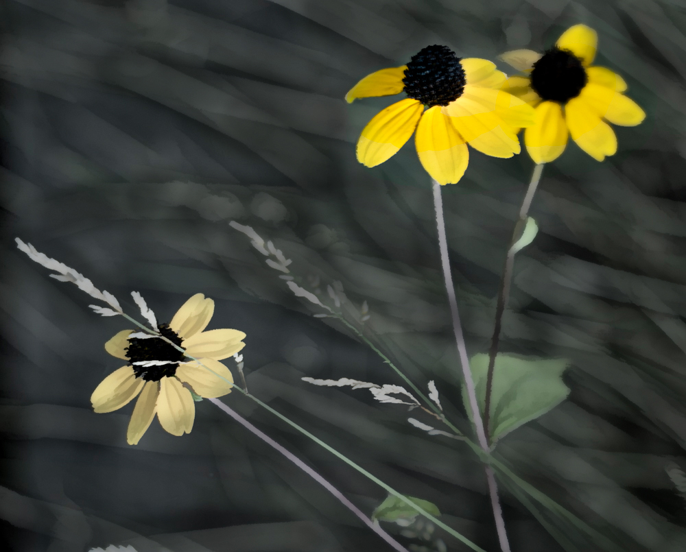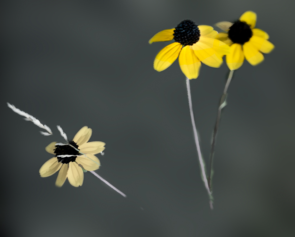 To minimize the bright background stems, here I just darkened the stems. Certainly not a perfect job, but you can see how it helps the flowers pop |