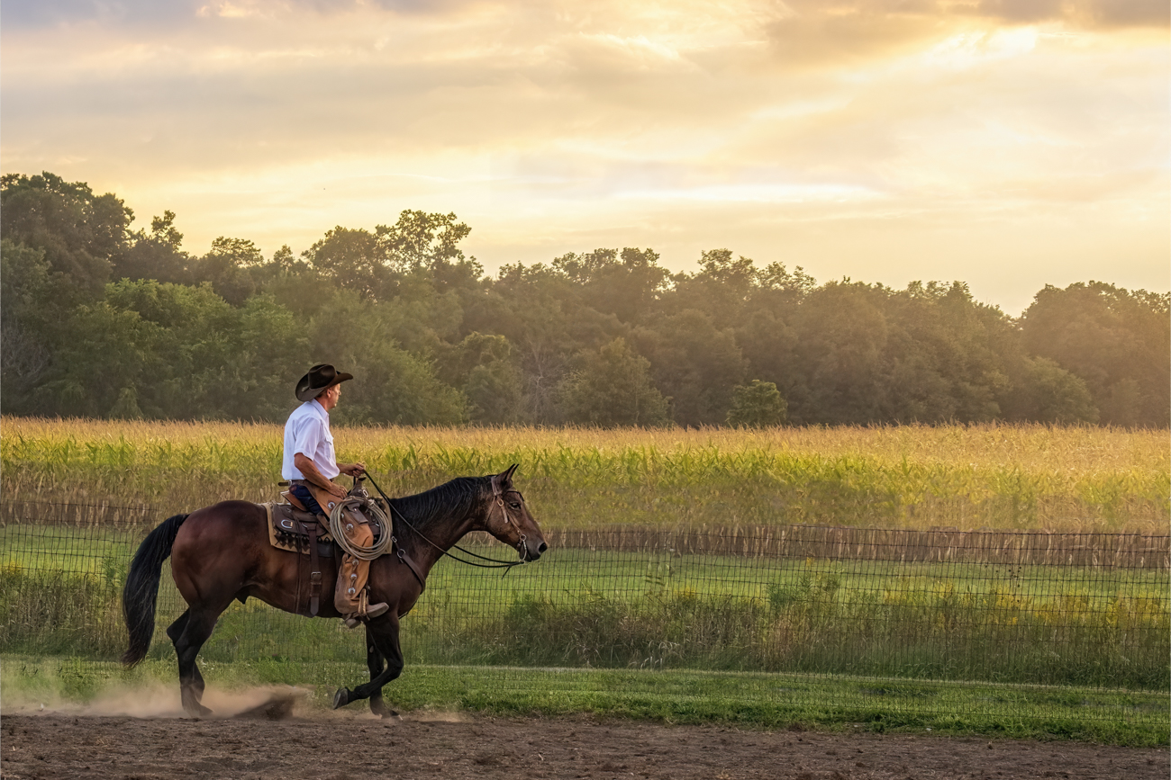 Thanks to everyone's suggestions, I have spent a lot of hours on my cowboy. I removed the white fence and went to a 4 x 6 crop (thanks, Terry and Sunil). Helen, I played with the grass line straightened, but with the tighter crop, it didn't really work as well as it would have in a panorama.