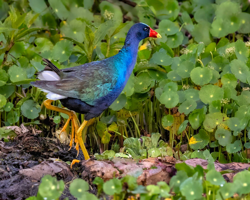I've redone my purple gallinule, taking into account everyone's comments.Thanks for all the feedback! I started over with the raw image. I reduced the brightness of the legs, so they did not distract from the bird. I gave the bird more head room and room to move into. I brightened the eye.