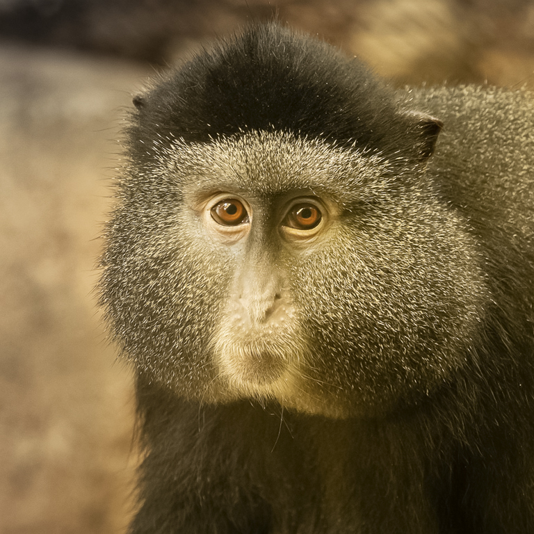 very sharp around the eyes and surrounding white color face, but not so much the rest of area. Thus, crop out the bottom half of dark fur area will improve the image.
