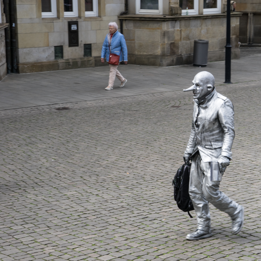 Very nice street-shot . Good story. This picture illustrates again how nice a square photo can be. A prefer also the crop from Isaac. |