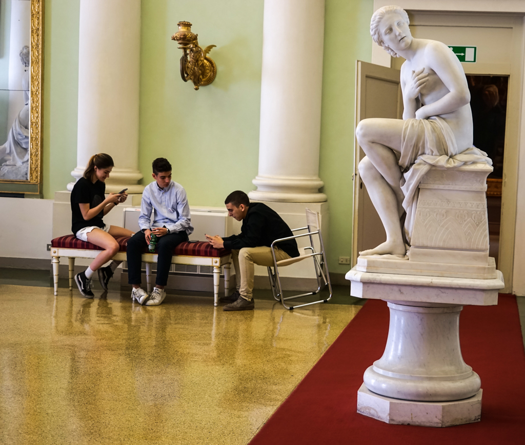 There are a lot of questions in the picture: to where are the persons looking , why is the girl not looking like the others...thats makes the photo interesting . Good colors to. |