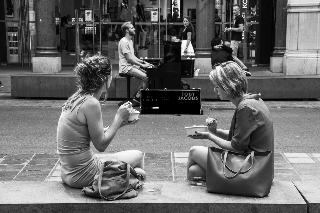 Nice scene , the combination between the person and the background works well. Good combination color and B/W. I prefer a little more of space (more distance to the scene). |