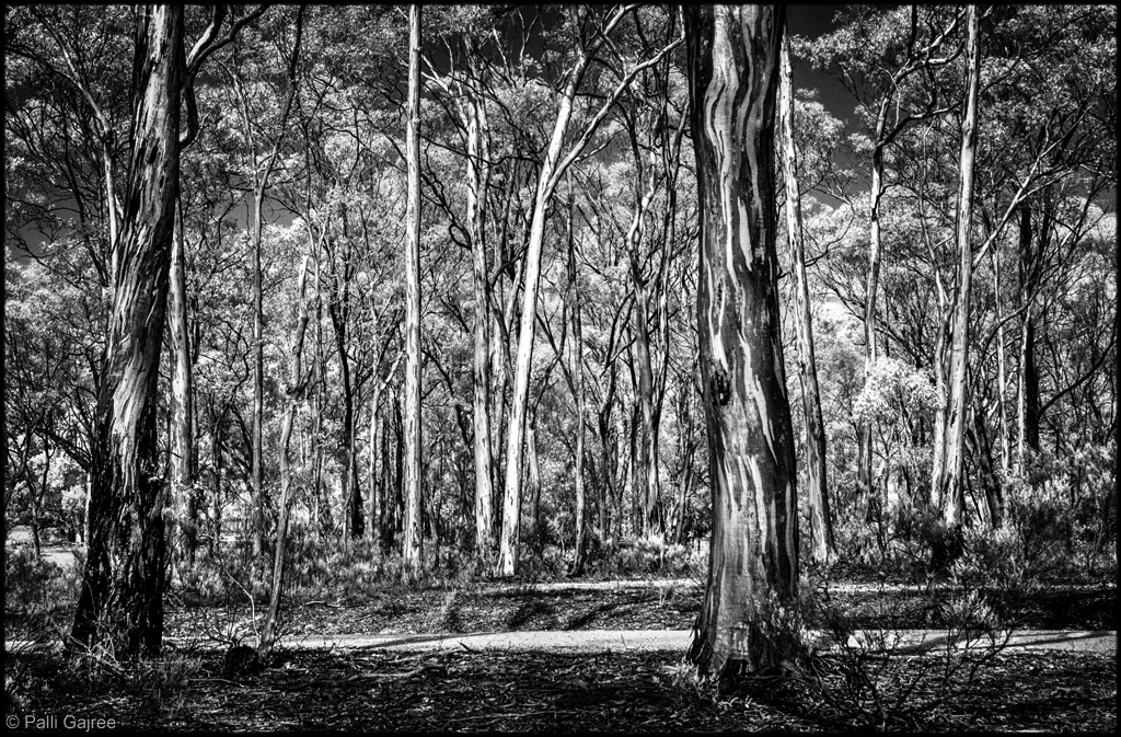Does the adjusted image attached have a bit more impact and drama? It is a choice point. For my eye, using Color Efex Pro 4.0 to apply the Darken/Lighten Center preset filter gives greater emphasis to the central trees which seem to be the most significant part of the composition. I like the depth of field personally but feel that something should be done to keep from looking all over this image for a place for the eye to land. Great contrasts and textures, Palli...and superb use of IR. |