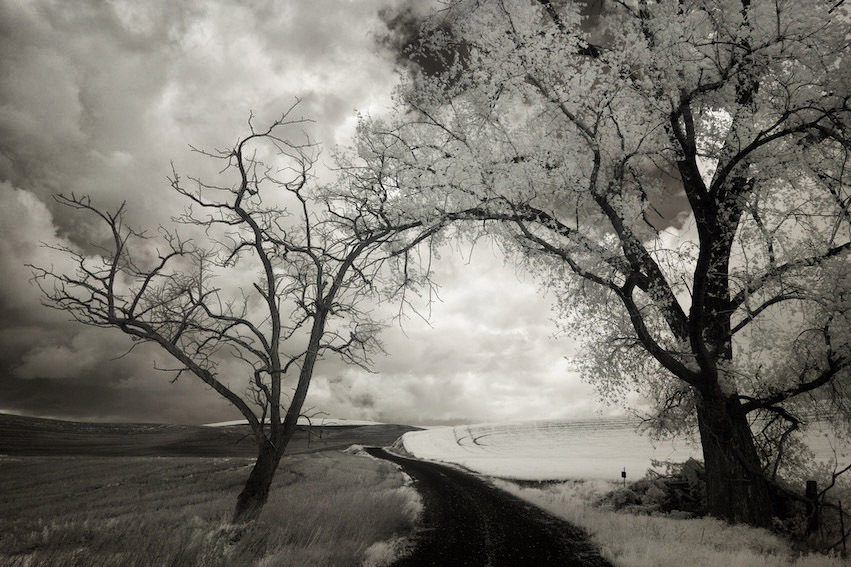 What a mood...and what a great application of IR. Well done. For me, the image is out of balance with the large mass of tree on the right and only a leafless tree on the left. I masked off the sky area and added Detail Extractor in Nik Color Efex Pro to this scene, and the added detail in the sky adds a dimension that I feel also adds to the balance. It's not about contrast per se, I think it's about the scene as originally presented to us being too "heavy" on the right. |