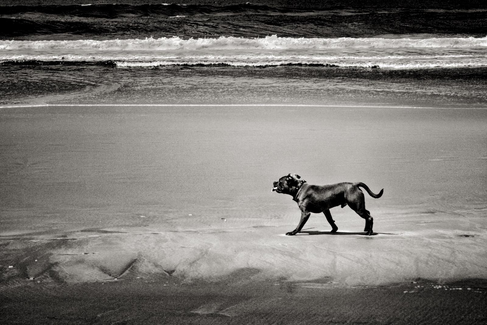 A true representation of "freedom" in my view. I appreciate the location of the dog with room to walk more into the frame. The toning adds a touch of tranquility in my view. What I feel would enhance the image is setting a stronger Black point, and I did so in the adjusted image by choosing Levels and clicking the Black eyedropper on the underbelly of the pup. I then used Nik Color Efex Pro, Lighten/Darken Center, to accentuate the animal in the scene a bit more. See if you feel it's a stronger image or not... |
