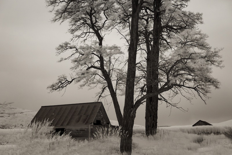 The mood created here is fantastic in my view. This is a piece of ART, and I truly mean that. It takes on a painterly or other-worldly feel with the cloudy sky...you've clearly disproved my theory that IR almost always needs bright, bold sun! Now, compositionally, I need to see more 'base' in your image...it is simply not anchored well at the bottom in my view. I took the liberty to add more base (crudely with cloning and Content Aware Fill) and personally like the adjusted version better. |