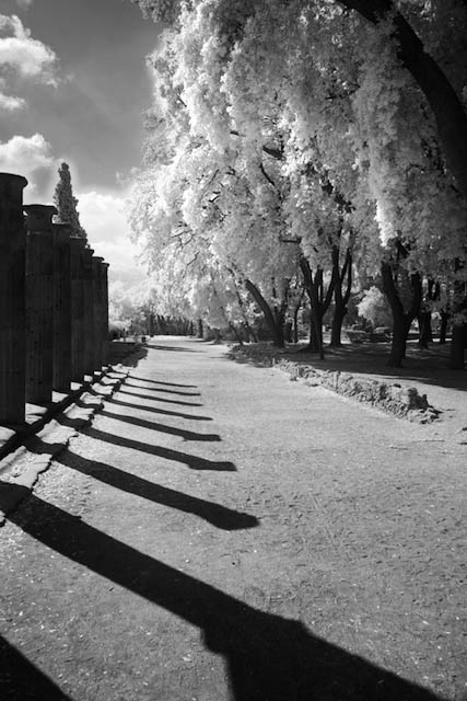 I know what you'll think...Gary has added blacks and contrast and boldness that Jack doesn't particularly like! It's just another view of the world of IR, isn't it. Here's my adjusted image, see what you think. I DO think the sky, however you care to do it, demands to be darkened somewhat. The composition and the disappearing set of leading lines are just fantastic, as is the large collection of trees on the right. Add in the shadows, and this image is a winner in my book. |