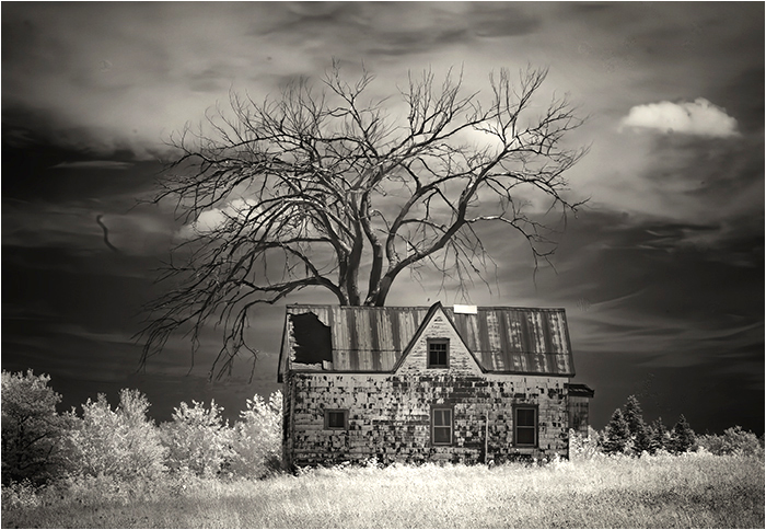 As you might surmise, this is MY KIND of IR. Love it. Keeping the old building and tree in the center is a wonderful example of breaking the 'rules' for good reason! Here's a VERY modest adjustment...I set LEVELS to give a stronger white and black. See if you like the very subtle difference... |