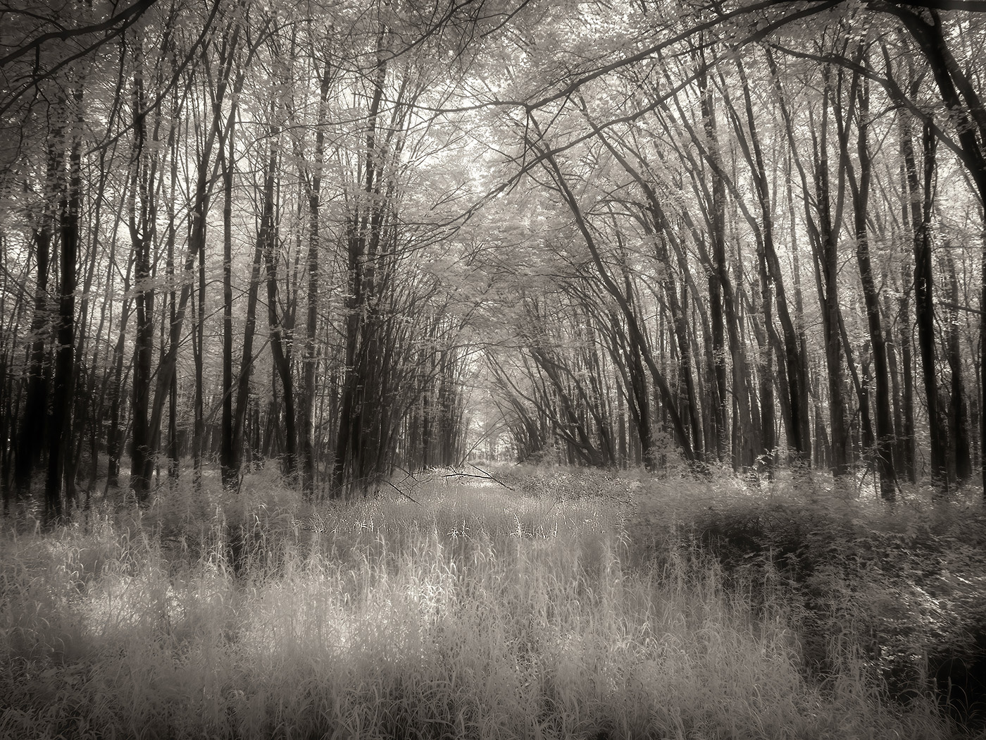 Your feedback is much appreciated, Jack. Yes, this one is quite a bit outside the rails for a traditional IR image. It is more art than literal, but I'm happy with the final result. The only way to have kept that dark sky was to significantly lighten that barren, central tree structure. |
