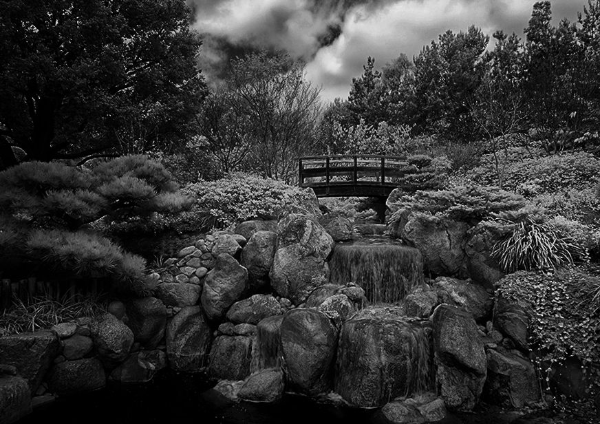 Don't sell yourself short on this image! There's a lot here, and we all probably have our own view of how we'd have done it or processed it. As you likely know by now, I'm not personally a fan of the partial color in an infrared capture, but that's my own bias and problem, not yours! Here's my adjusted view, entirely in monochrome, with a fair bit of cropping, dodging, levels and curves adjustments. I'm sure all will have their own views. One thing...wish you'd have had a longer exposure to give the water more of a ribbon flow. |