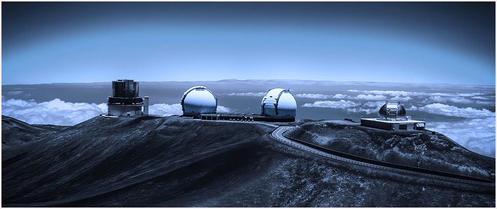 Charles, the blue toning is perfect for the mood and the story. As you probably know, I'm not generally a fan of this technique, but I sure am in this scene. That arc of light in the sky is wonderful. I agree with Jack that this would be great as a panoramic presentation, and I've attached my version. Look how all the lines in the foreground and road flow to the observatories. |