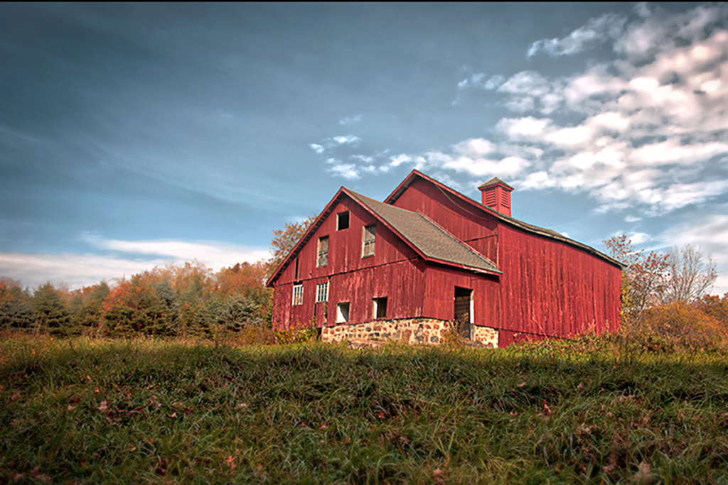Phil, it's a nice composition, however I believe it should be cropped to emphasize the barn, much like Le said. When I down loaded the photo I spotted 2 dust spots on the left side. I usually, go after any dust spots as the first items to correct. I made some modifications to your original photo, cropped to remove the tree on the right, darken the colors in the barn and the foreground. Then I used curves to bring out the barn. |