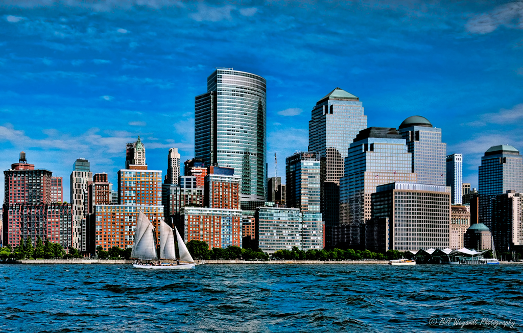 Bill, nice shot of the NYC Skyline. I modified your photo and made it a 16x9, used topaz to take out some of the noise, and used photoshop to bring out the white in the clouds. Also took out some of the blue. Not sure it's better, but.... I liked the way the building reflection brought the viewers eye into the scene. |