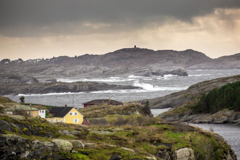 Arne, I like this photo. I made some small adjustments using curves, selected color - Yellow and a little sharpening. I darken the clouds to make the storm more pronounced, lighten up the foreground and the the house. Sharpen the foreground. I like the 1/3 area you had foreground with the house, water and the cliffs and finally the storm clouds. All-in-all a very nice photo