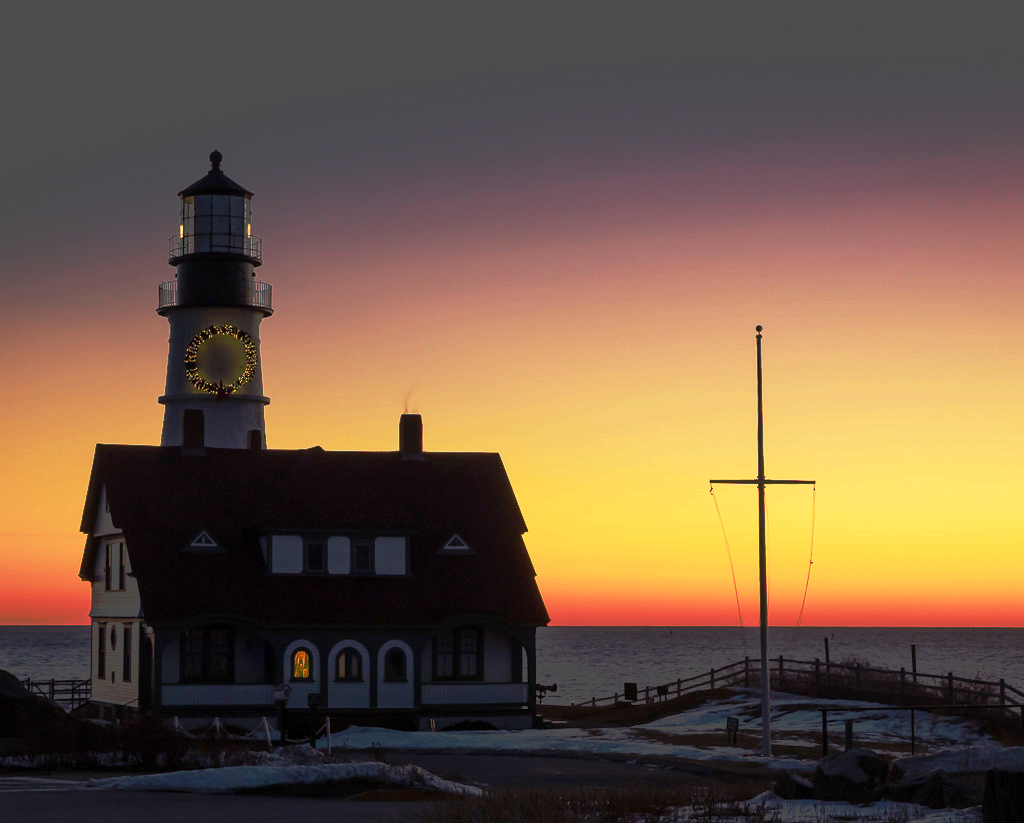 Wonderful early morning photo. It has a moody sense, I liked what Arne and Bill used to describe the mood. I modied the photo to bring out some more elements of the light house and removed the item near the mast. I believe your photo is better. |
