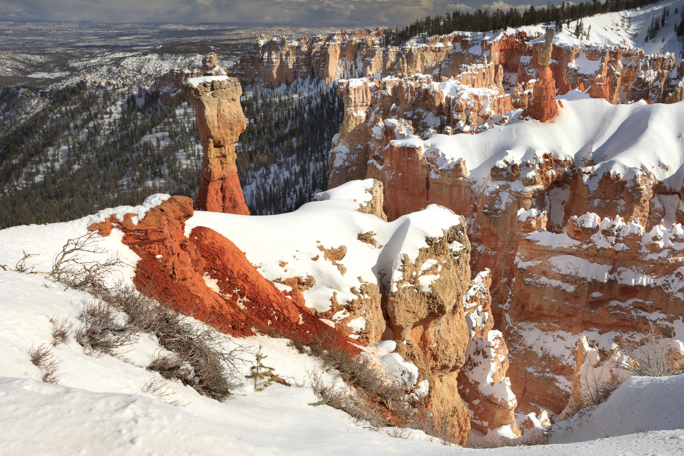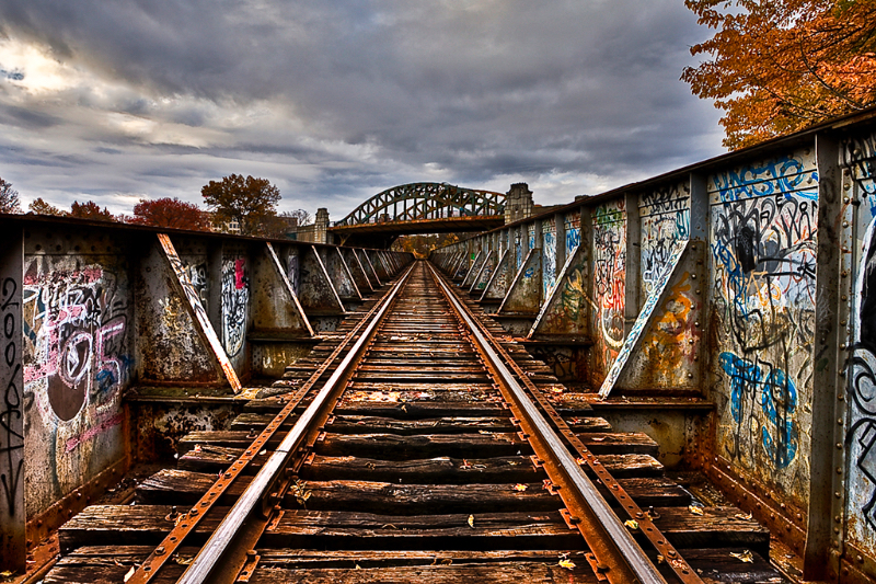 Good place to take the photo. Many people take this photo from the location bare spot and miss the rest of the scene. Like the composition and the roads which lead the viewers eye to the bridge and then continues on the the mountains. I agree with Arne you need to get some more depth by darken in the foreground. Nice photo. |