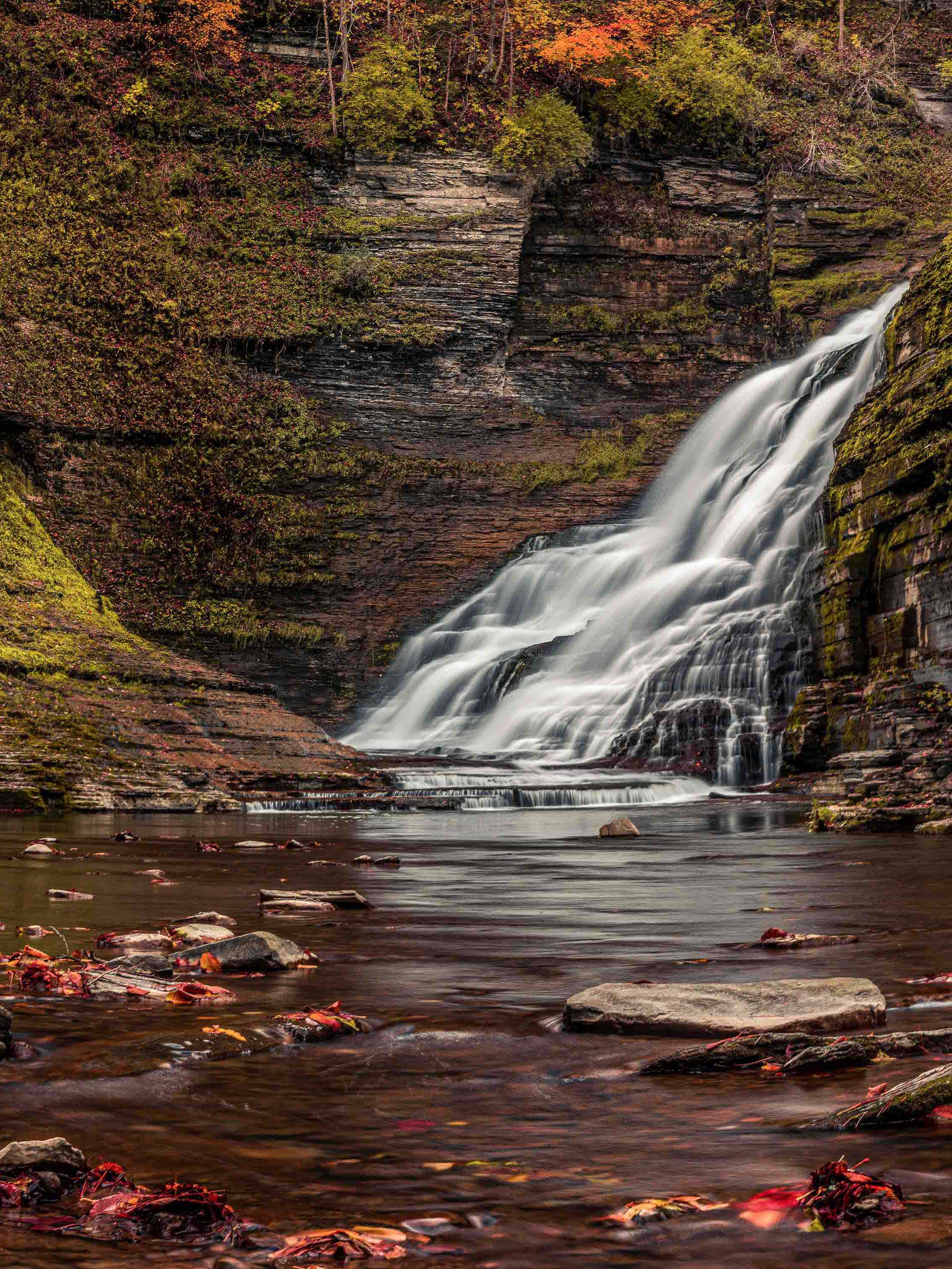 Larry, I really enjoy reading your description of your photo. I like the photo, but I found myself skipping over the rocks and missing the leaves. I modfied your photo to 9x12 by eliminating the rock on the left, which then I stopped skiping over the rocks. See my attachment. Overall I really liked this photo and as always your falls are great. |
