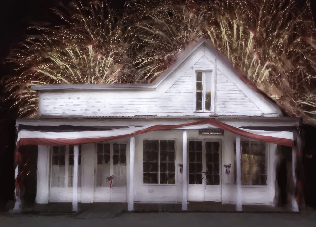 Hi Kathy, I love the old house and it is decorated for Fourth of July so the fireworks really fit. In my review, I added more of the clean fireworks and replaced the smoked one and then added a color layer filled with a light pink using soft light mode to bring all the elements together in one color harmony . The composite of the fireworks was a quick one so I know you can do it better. With the color layer, I also used a mask to take off a bit from the steps and bottom of the image. |