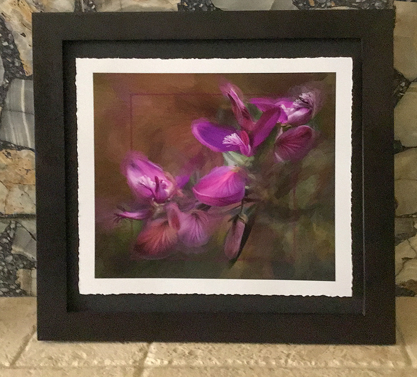 I thought you might like to see the final presentation. I sprayed the print so I didn't need to use glass . I added a white border and deckled the edges. Then raised in with mat board on a black mat board . The judges were very complimentary of this presentation. |