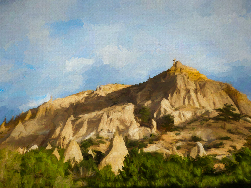 I have enjoyed photographing this area a couple of times and loved the climb to the top. This is a great view, too of the mountain range. I like the technique you used on the mountains. It is a nice texture. I agree with Cyril that the shadows on the right are a bit blocked up. I took your image into photoshop and used camera raw and opened the shadows and left the rest alone especially your great sky. |