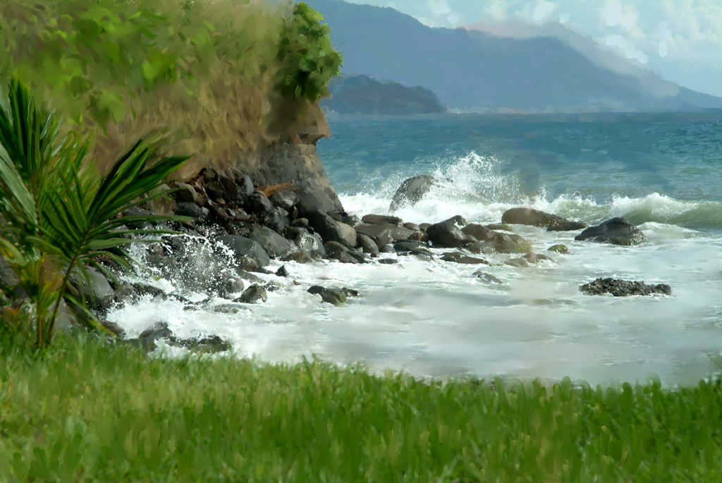 Lovely setting and painting always seems to enhance a photograph. Nice painting using Corel. To me the rock strokes look realistic and yet painted. In my review, I just darkened the image a bit to bring in more saturation as it seems a bit flat on my computer and a bit too light. |