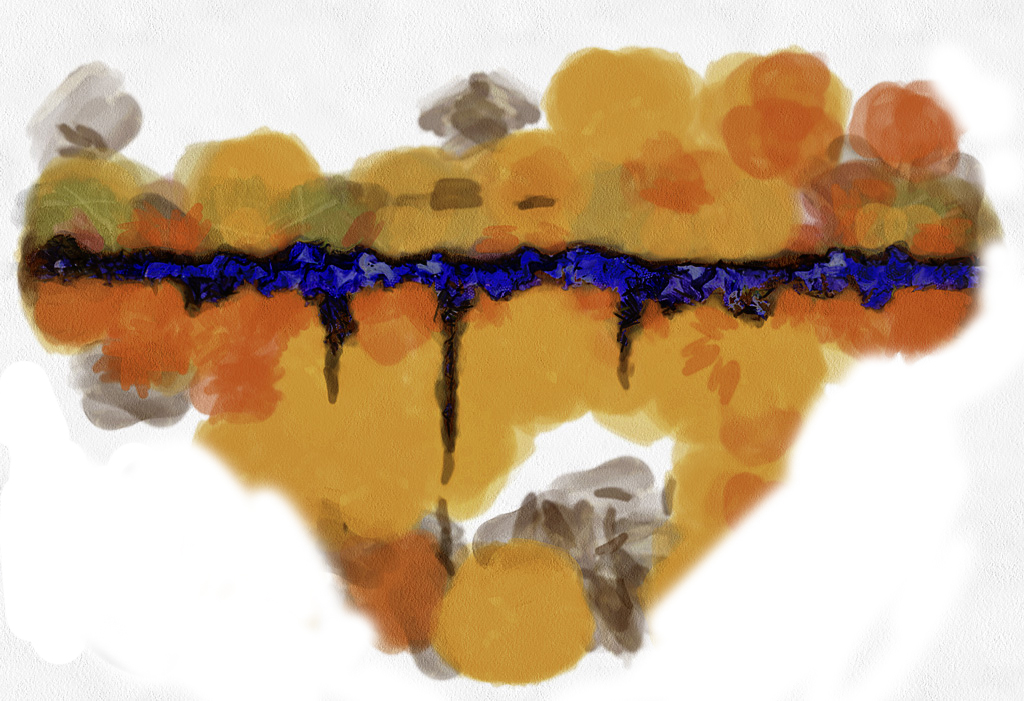As an abstract it definitely has a strong wow factor with the complementary hues of orange and blue colors and their resultant shapes. Together they are truly striking. I think Elinor has something on the composition and I played around with it. I know in abstract it doesn't really need to have a center of interest, but compositional elements do play a part. Playing around with different compositions might be fun. |
