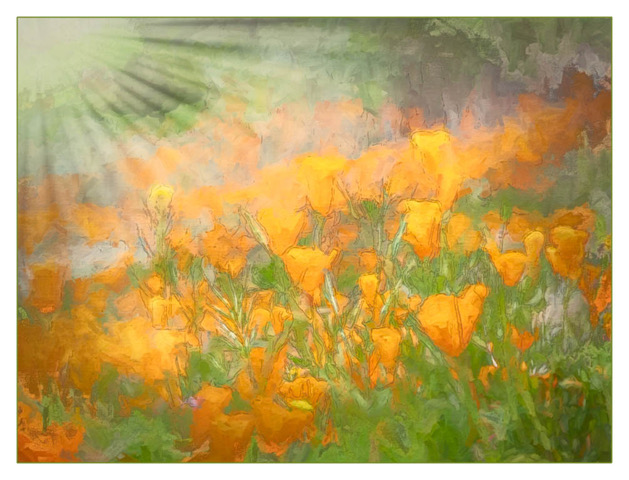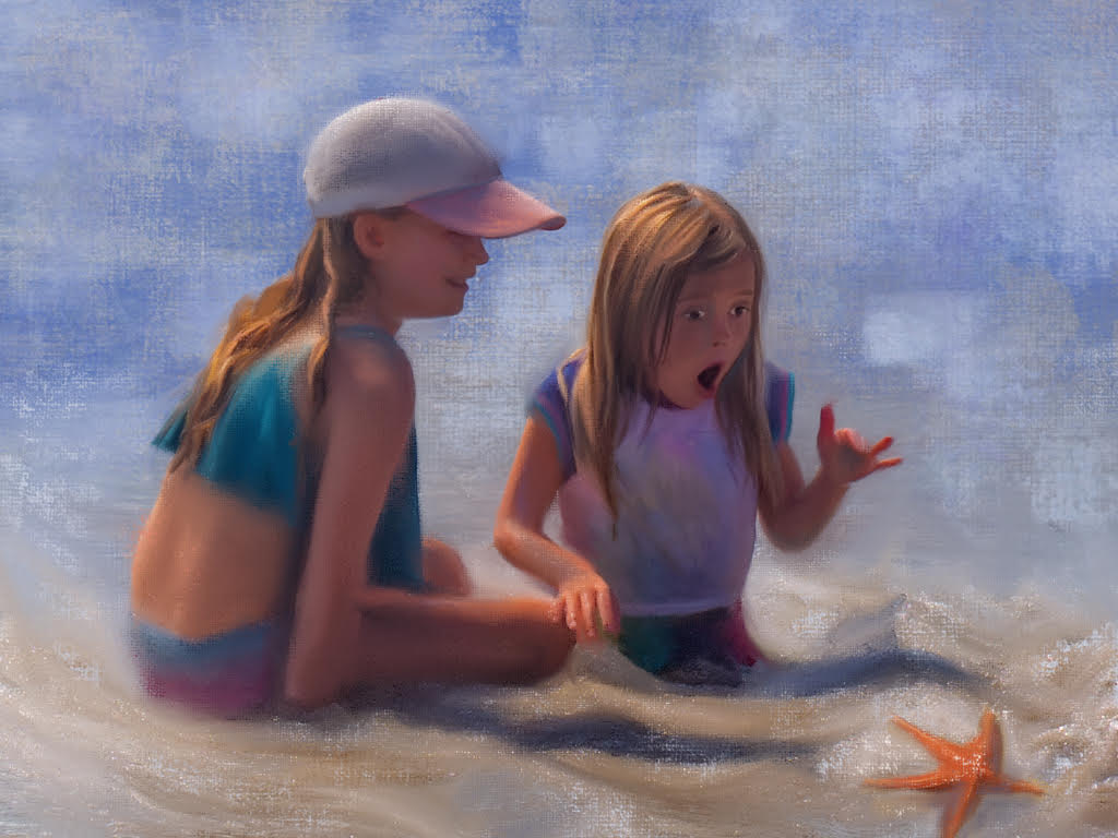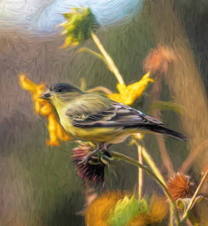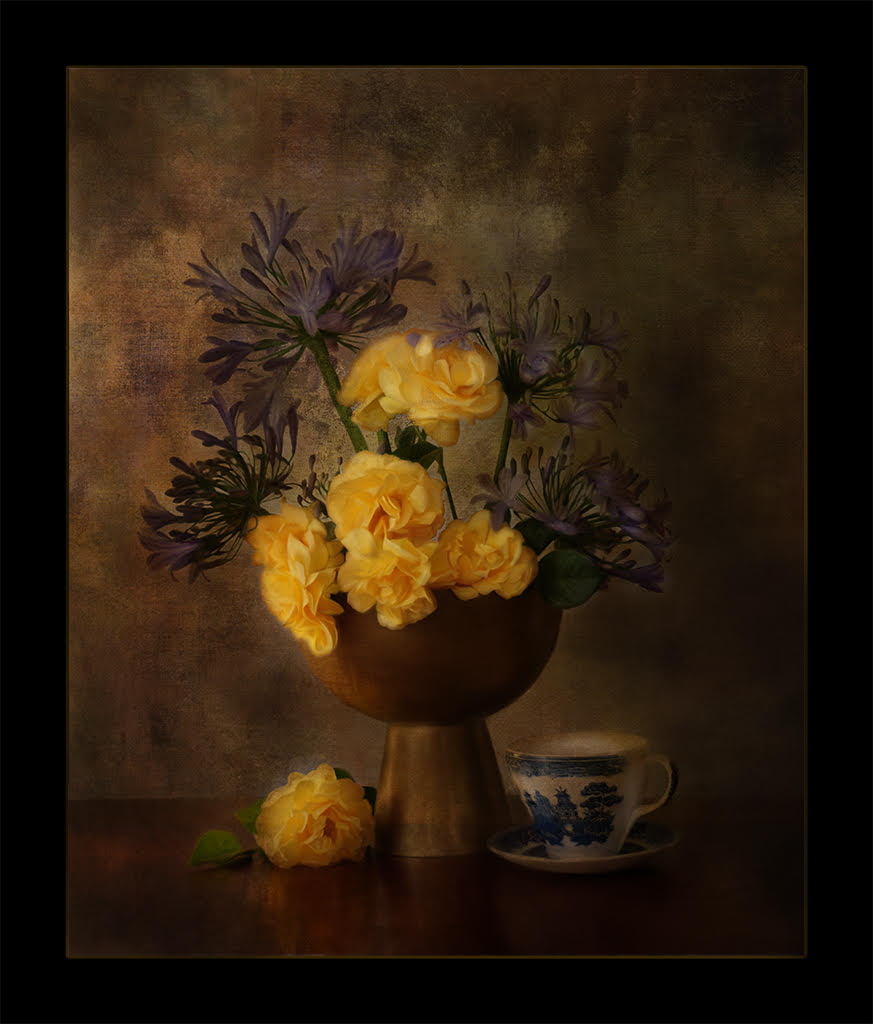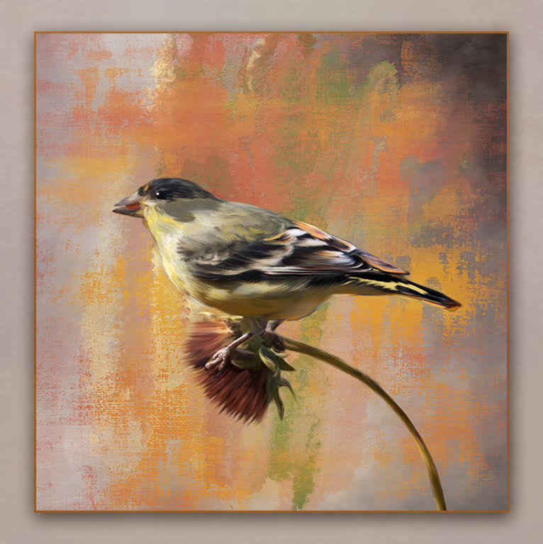 Coming in late, there isn't much else to say. I love the warm tones of the image and the creative effect of water ripples in the background. A lovely painting and a lovely photographic image. |
