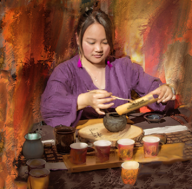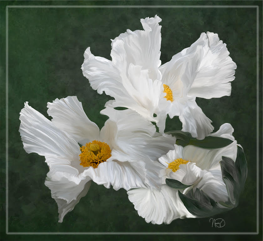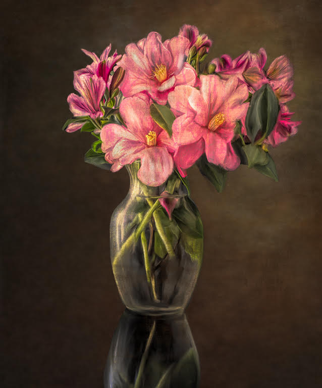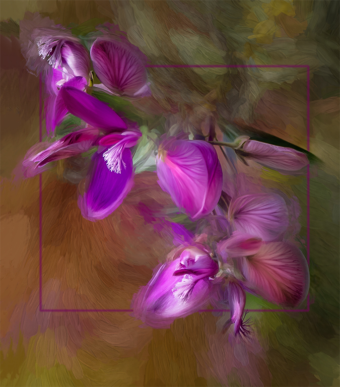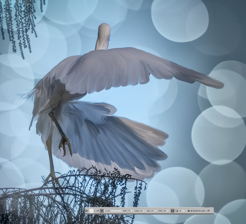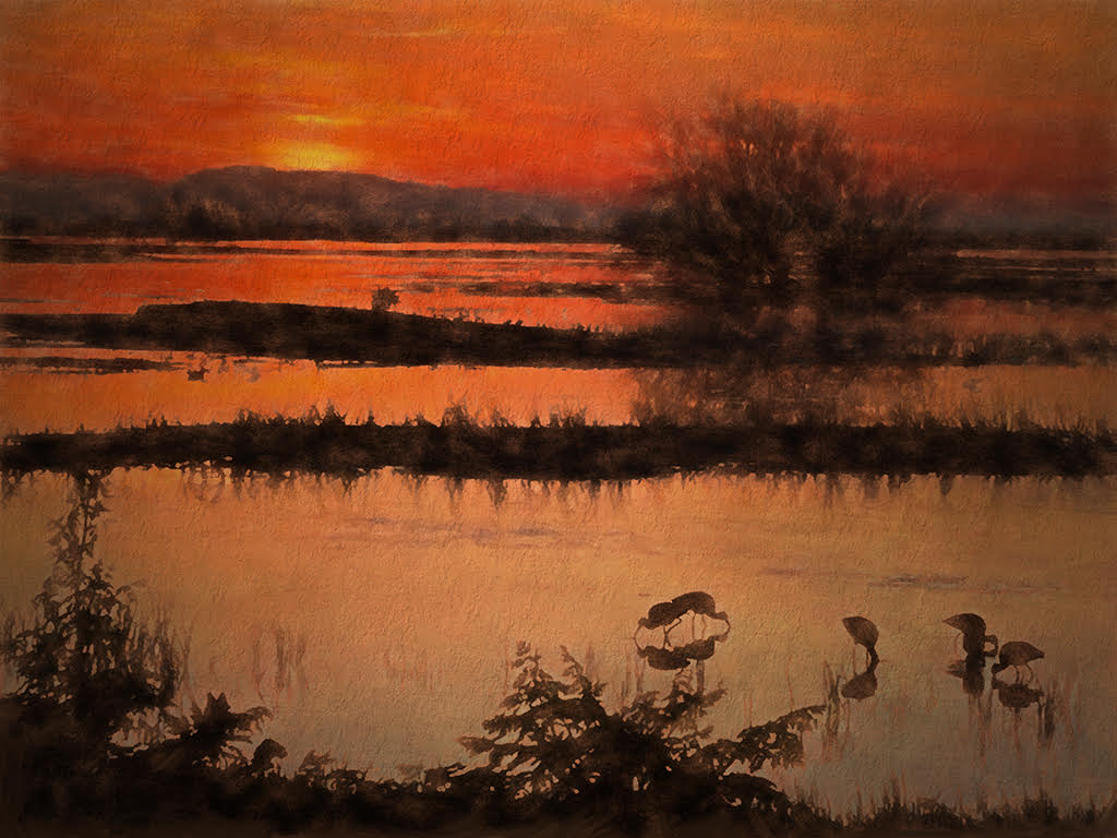 Coming in late, there isn't much else to say. I love the warm tones of the image and the creative effect of water ripples in the background. A lovely painting and a lovely photographic image. |