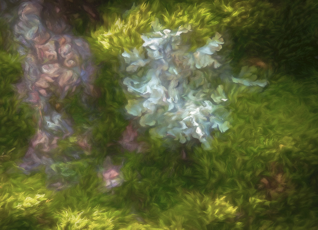 Such a lovely area to visit. I enjoy the greenery garden art effect you created and your insightful narrative. You may want to bring back some of the sharp detail of the boulders to provide more contrast between the greenery and granite displays. I guess I am in a cropping mood today but I did crop a bit from the left to create a bit of interest rather than having both of the granite pieces in the center. |