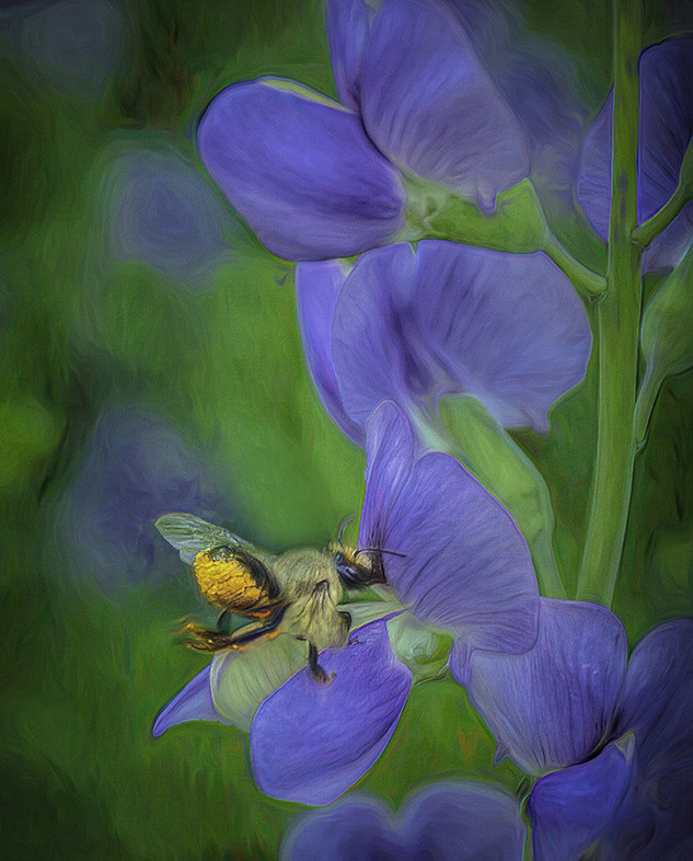 Your decision to put more saturation was a very positive decision. The petals and strokes are equally lovely. You may want to do another crop from the top and bottom to put the bee in a better rule of 3rds crop. The rich colors really draw my eye to your art work. Nicely done.