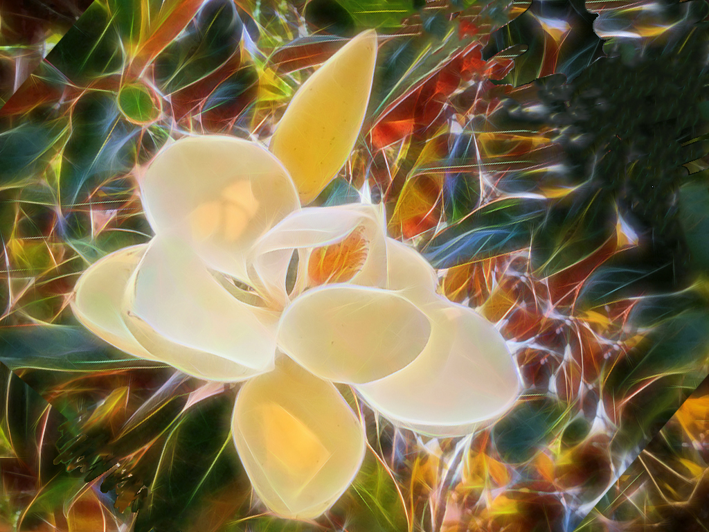 this image has so much drama and I just gave it a twist to put it on a diagonal and a bit off-center to add more drama. You will do a better job with the edges than I, but, the Magnolia sitting in the middle of the image just didn't seem to do justice to the drama from the brilliant background. Fun Image |