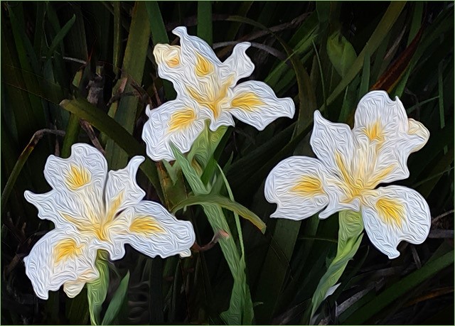Later: I see you springtime iris emerging from the drab background as the promise of a better, brighter stage ahead. |